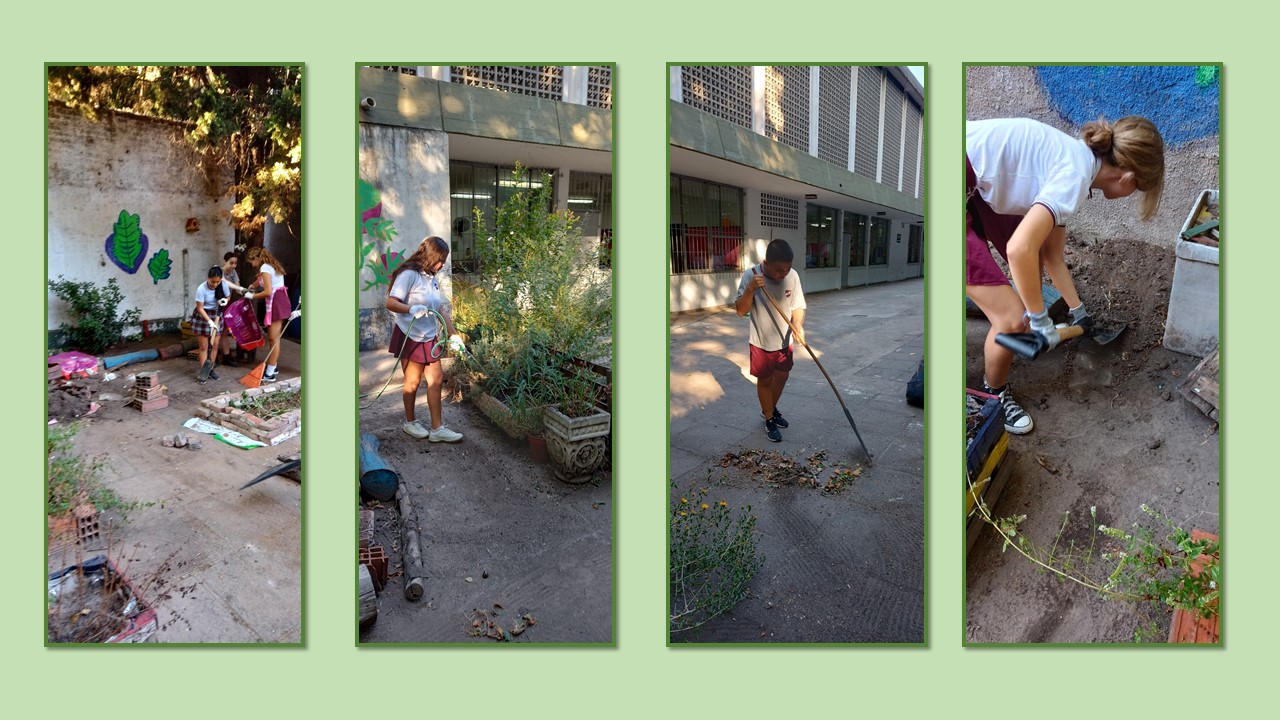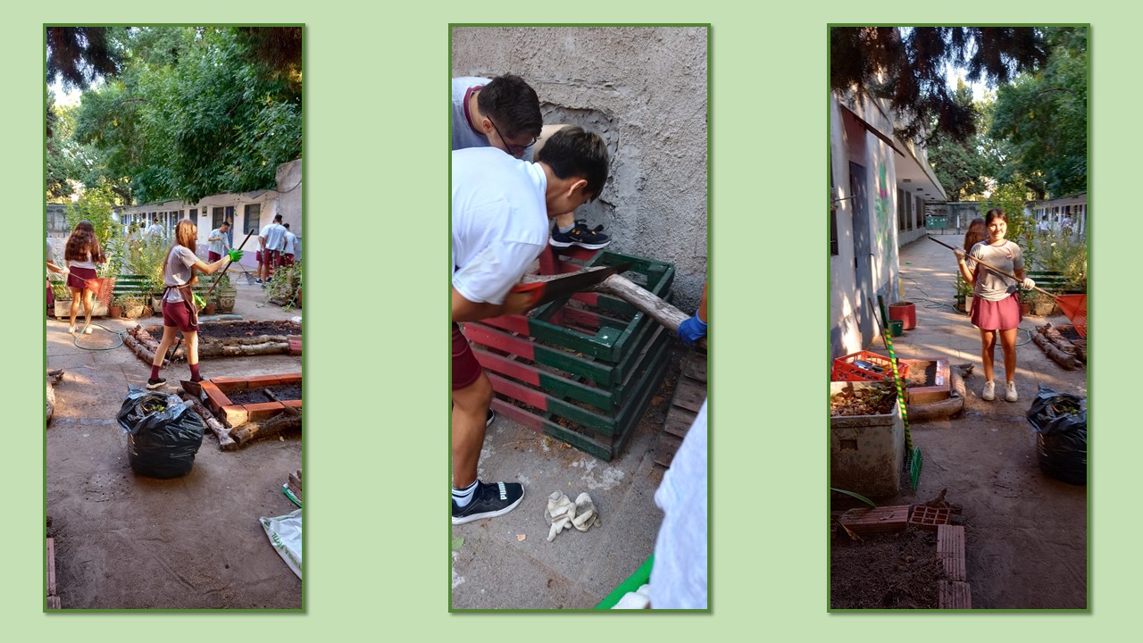 Los alumnos de 3er año comenzaron con el trabajo en la huerta. Fue una jornada de mucho trabajo, desmalezando, construyendo nuevos canteros y poniendo en orden luego de las vacaciones de verano.
