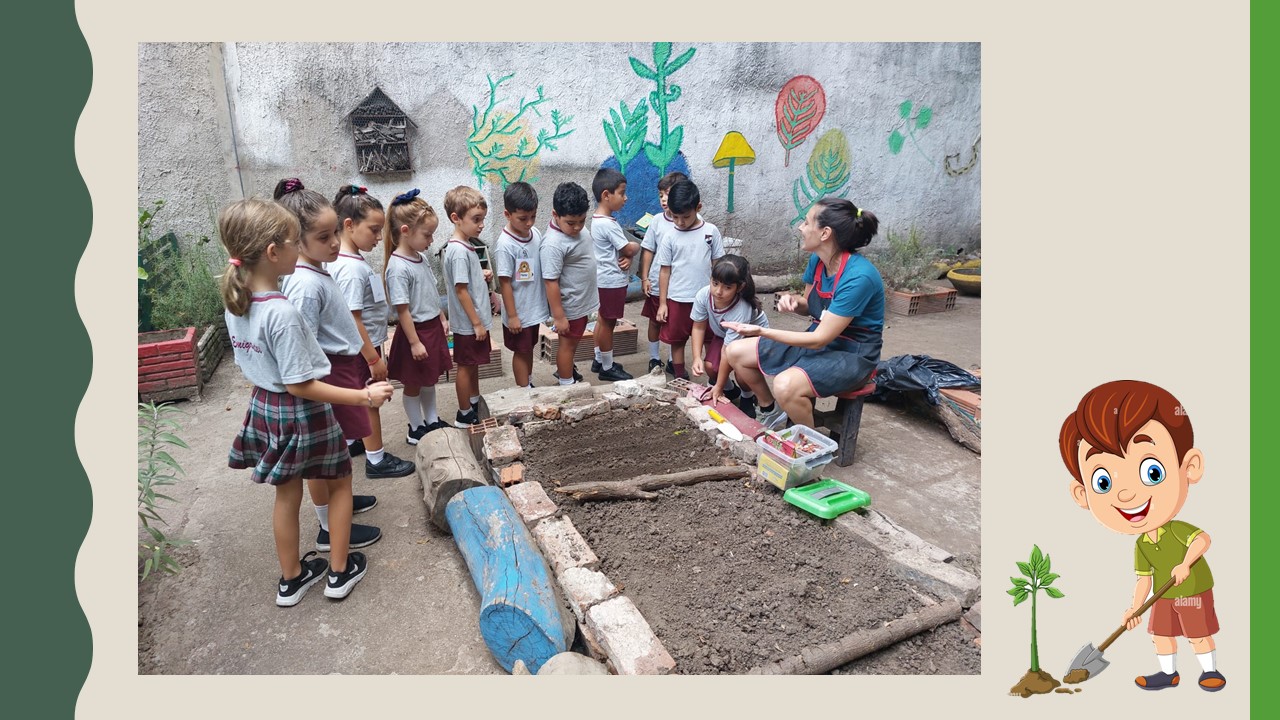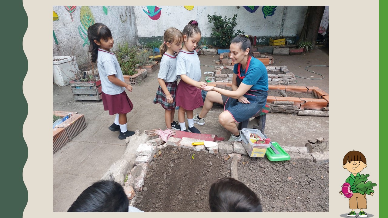 Los alumnos de 1er grado trabajaron en la huerta sembrando cultivos de estación.