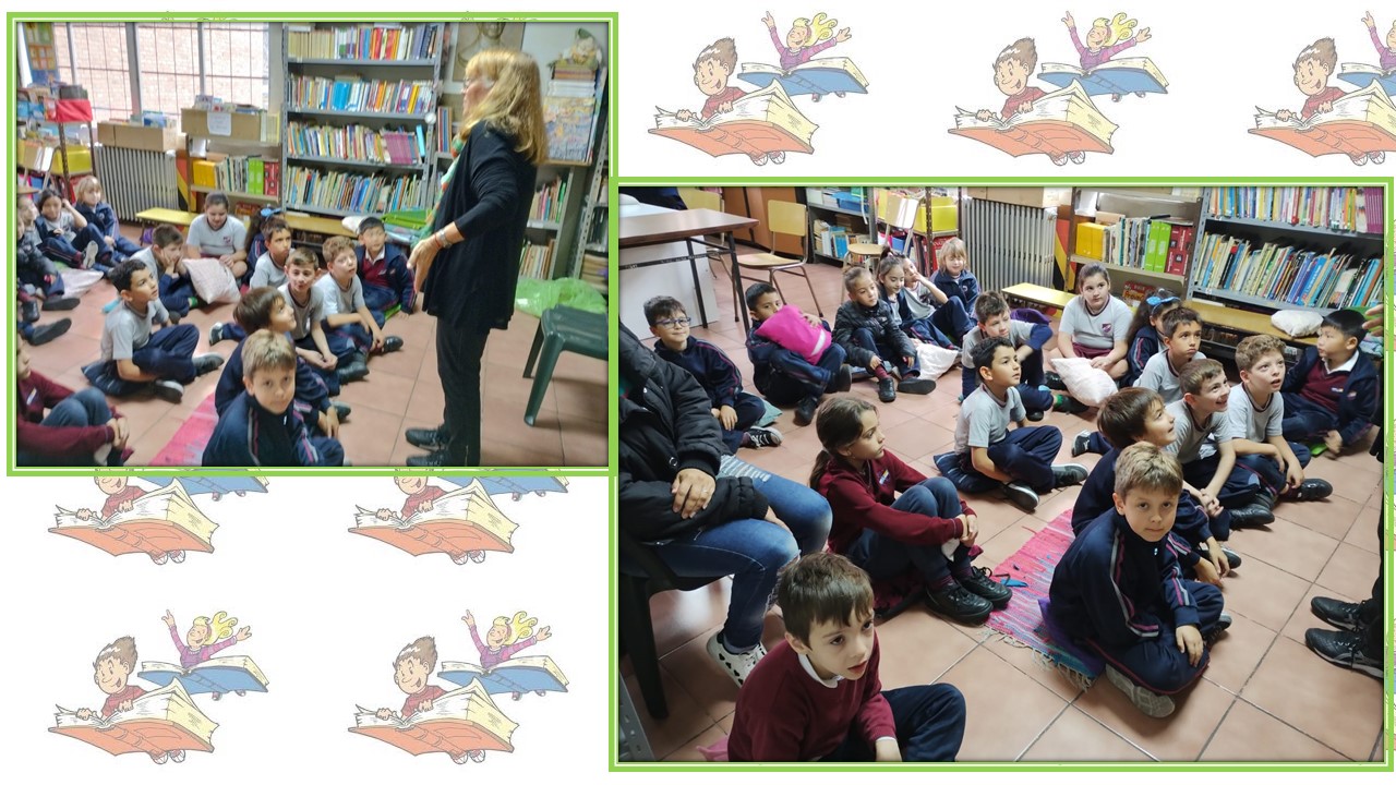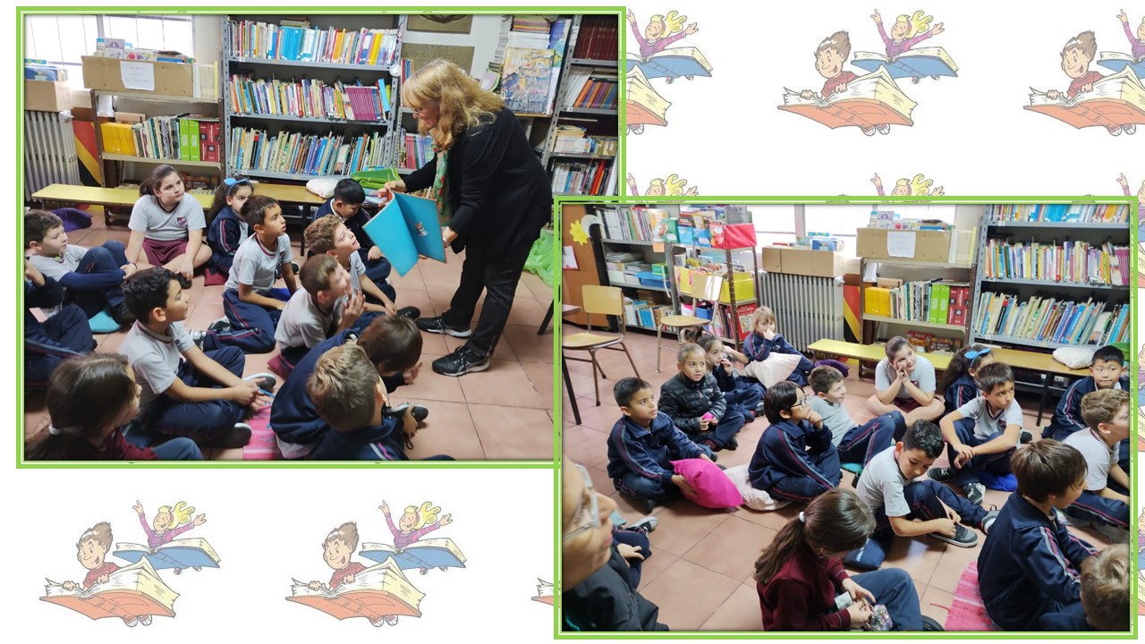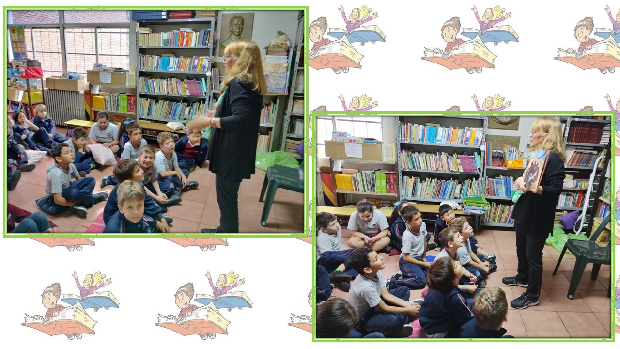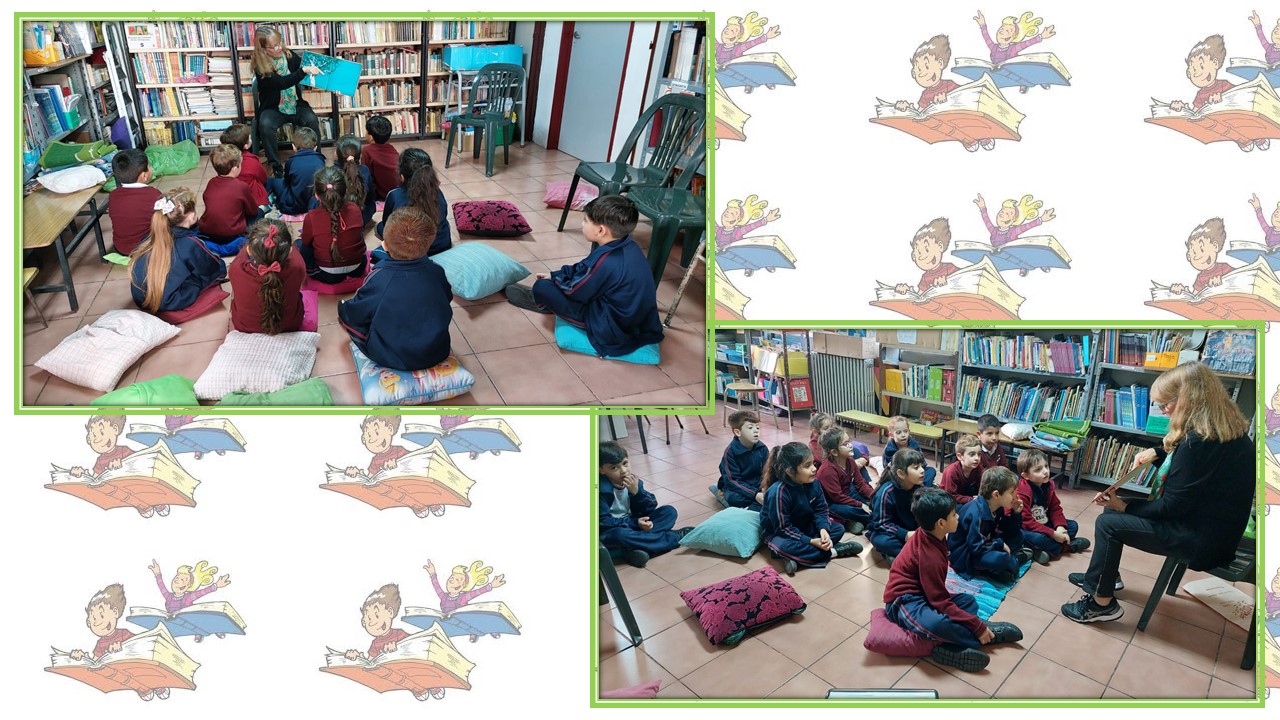 Los chicos de 1ero y 2do grado recibieron la visita de la Seño Marisa Censi, ex docente de la escuela, quien vino a contar el cuento "Mi perro Roberto", para dar comienzo al Proyecto Literario "¿Quién nos cuenta cuento?