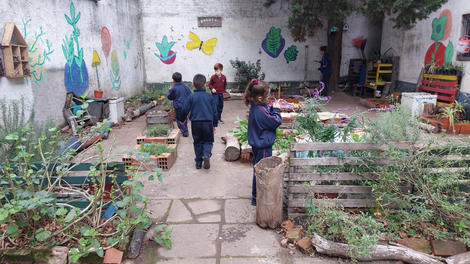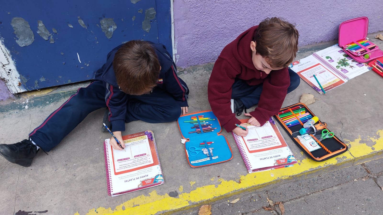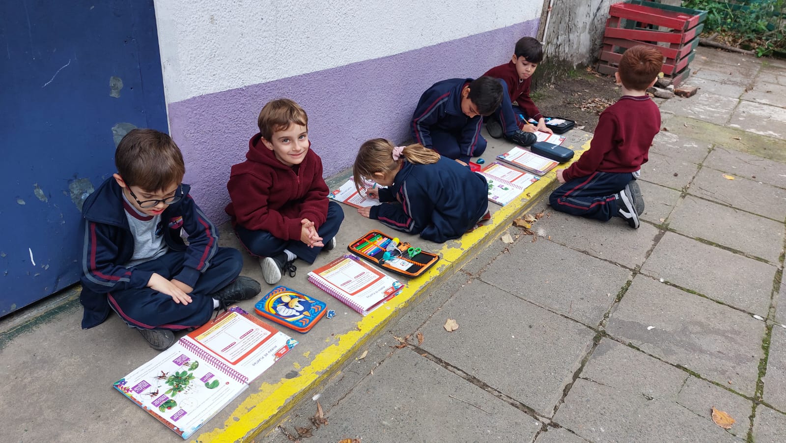 Los chicos y chicas de 1ero visitaron la huerta Señorita Sandra en la semana de medio ambiente, para trabajar sobre "Las plantas", sus formas, texturas y se dibujó lo observado