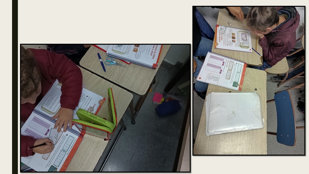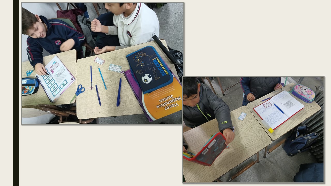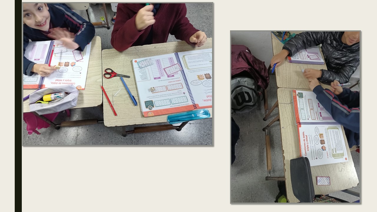 Los alumnos de 3er grado en la clase de matematica trabajaron con el "doble y triple" a traves de juegos con dados y cartones.