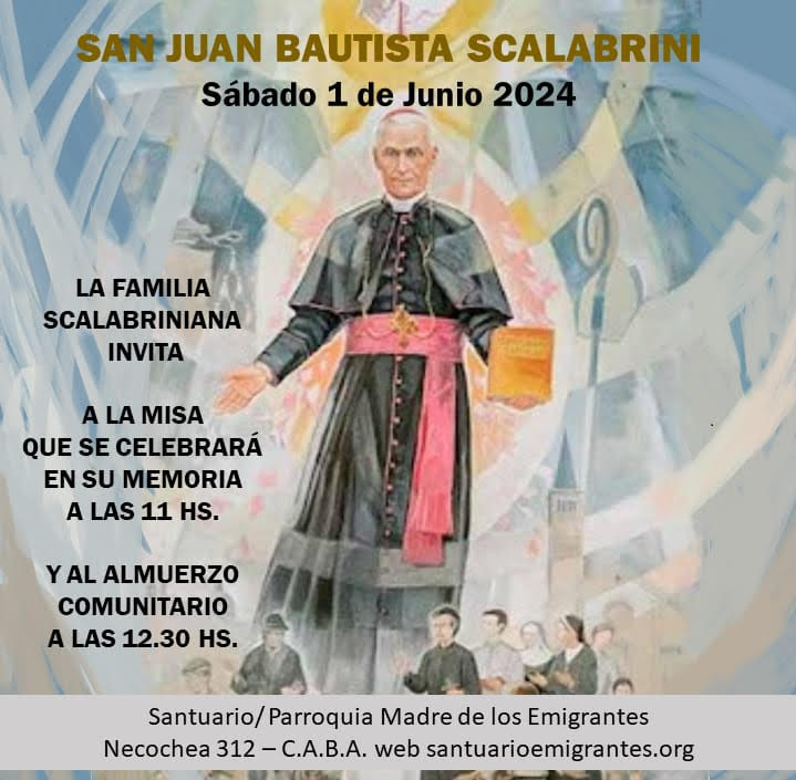 Los invitamos a compartir la celebración que se realizará el día Sábado 1º de Junio a las 11 hs en conmemoración a nuestro patrono San Juan Bautista Scalabrini.