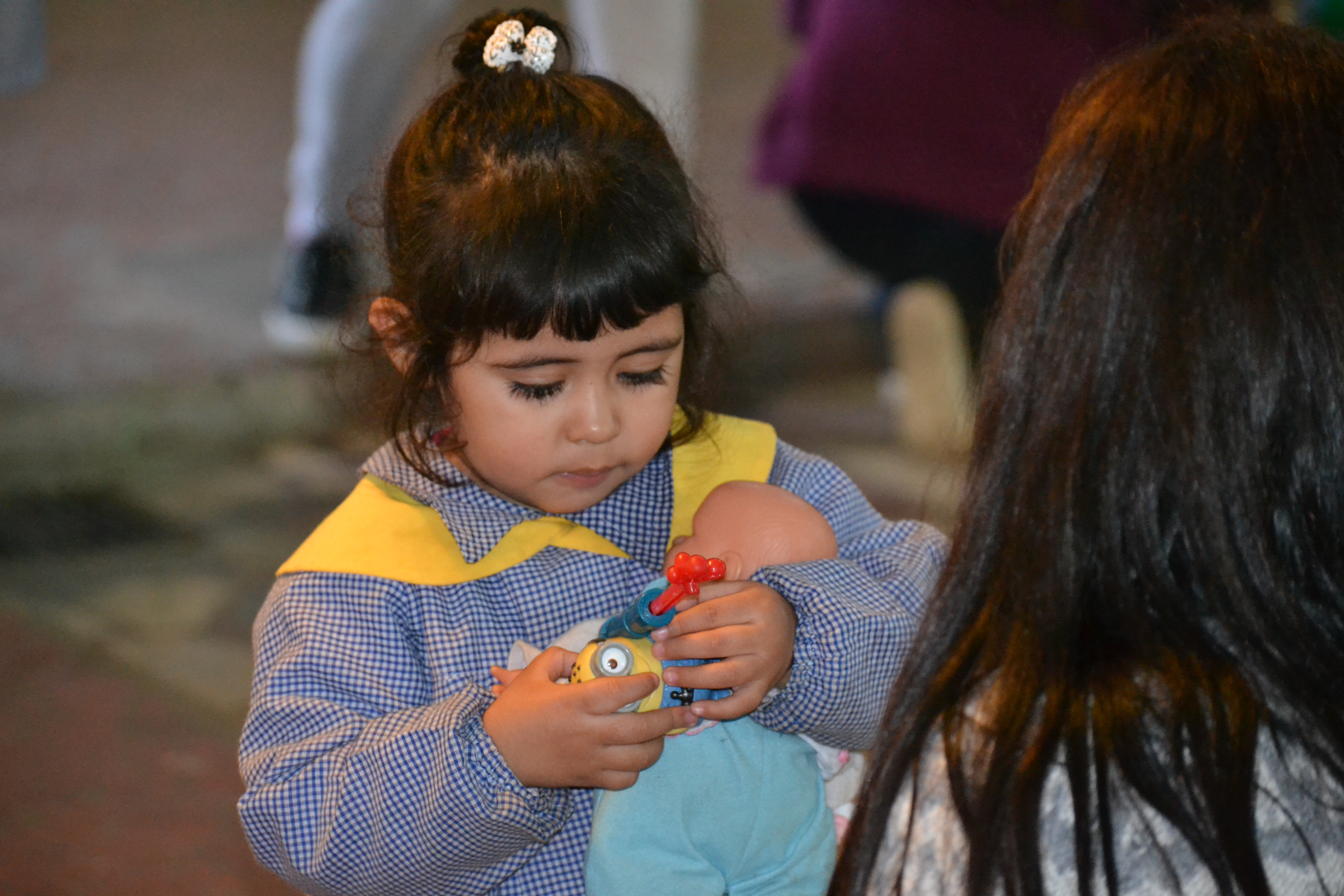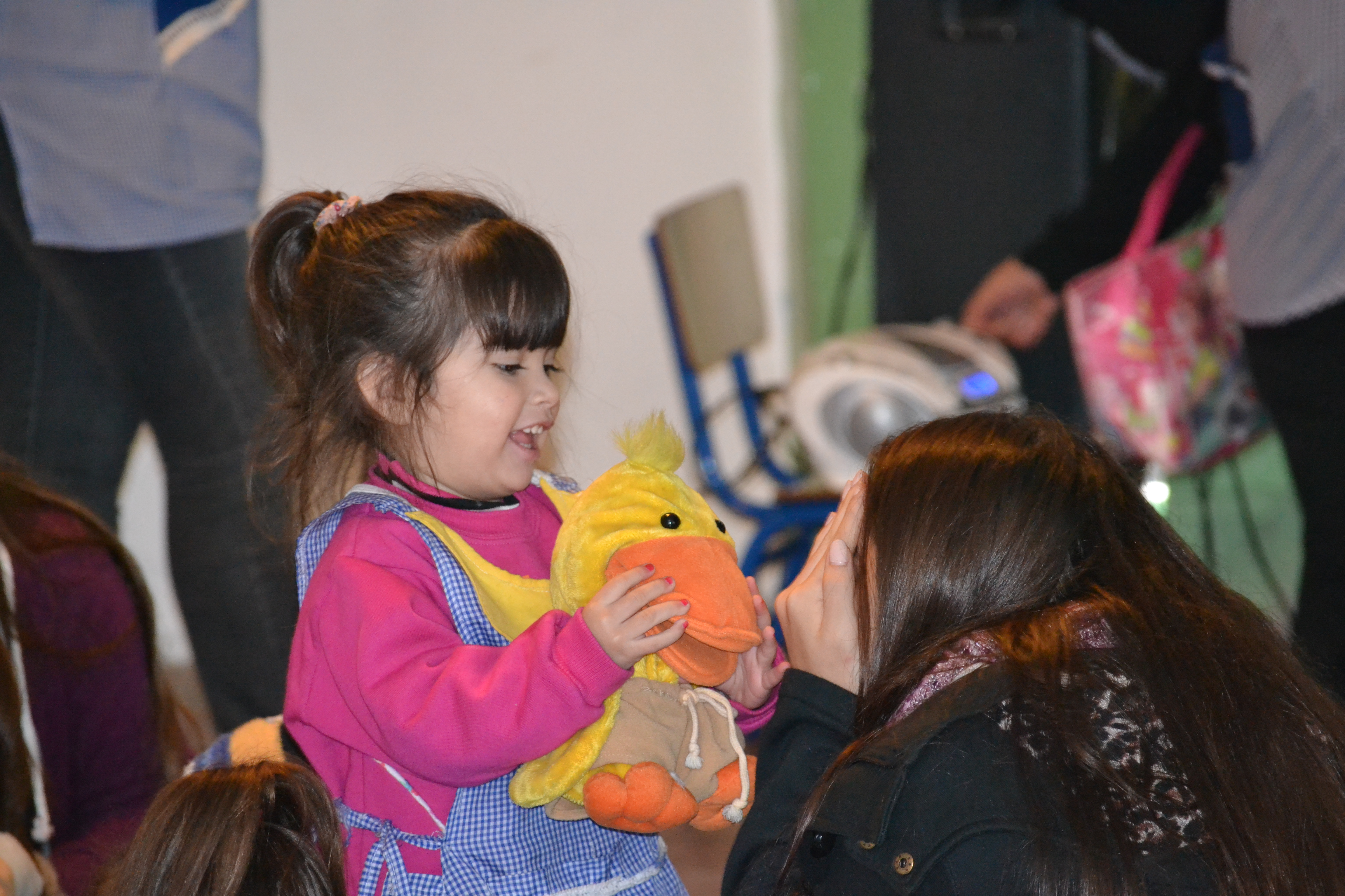Recibiendo regalitos y jugando entre los nenes del jardín y los de Emigrantes.