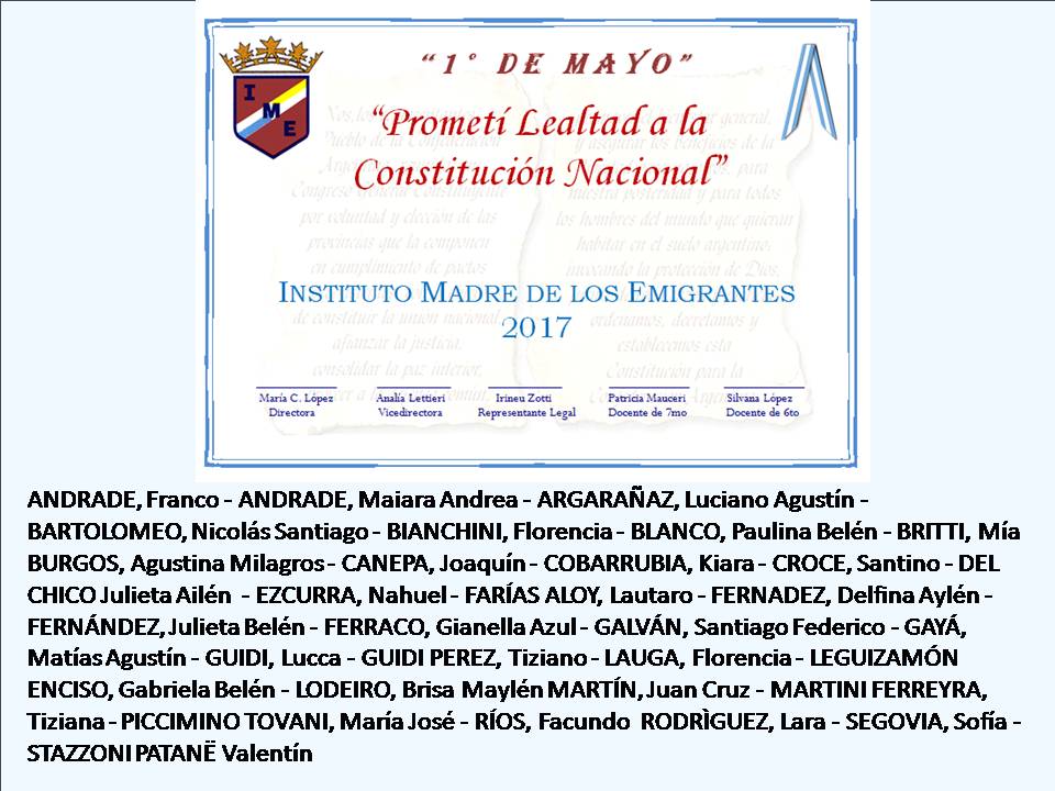 El día 2 de mayo, recordamos en nuestra escuela el Día Internacional del Trabajador y la sanción en la provincia de Santa Fe la Constitución Nacional del año 1853, la misma que, con sus sucesivas modificaciones sigue hoy vigente.