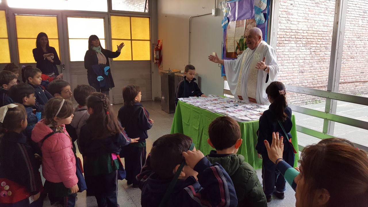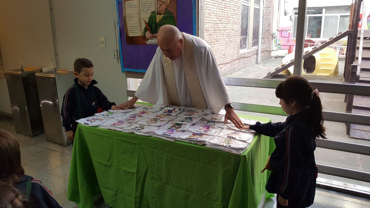 Participaron de la celebración alumnos, familiares, autoridades y el Padre Juan quien bendijo las remeras.