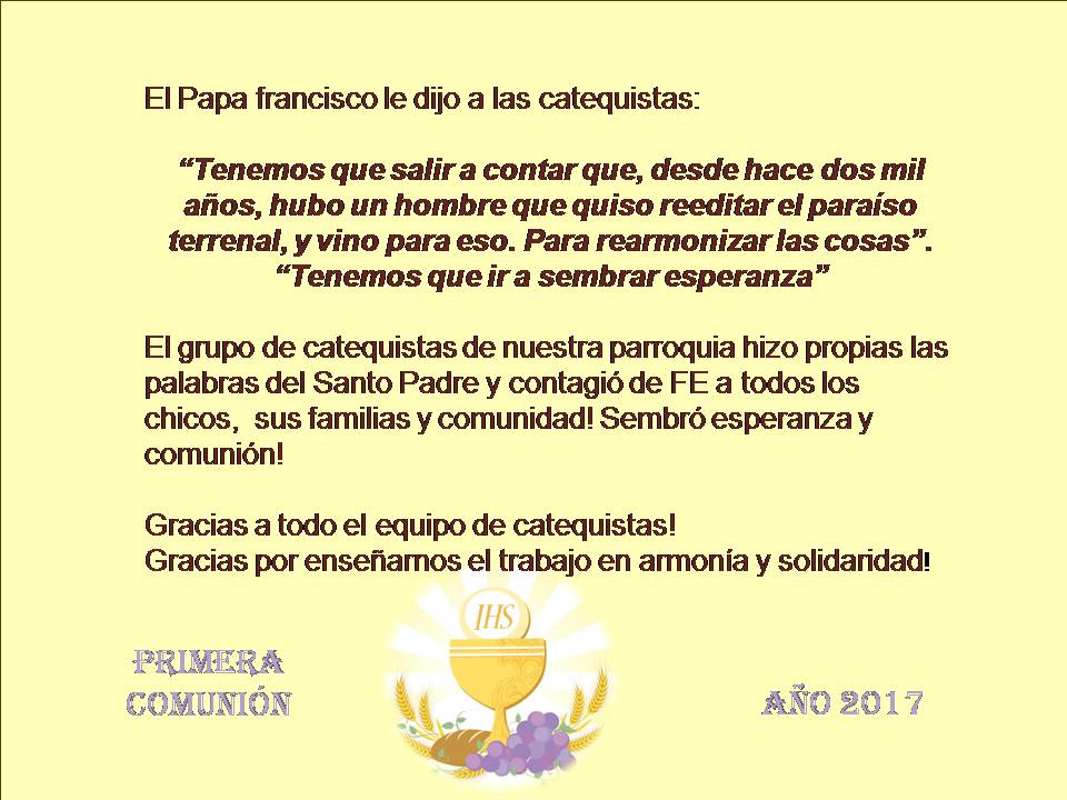 Agradecemos el trabajo amoroso de todas las catequistas de la parroquia que, durante todo el año, sembraron FE en todos los chicos, sus familias y comunidad.