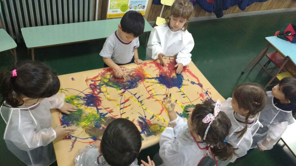 En el marco del Proyecto de inicio: Dónde nos lleva la música?, los niños de sala roja experimentaron con sus manos y témperas al ritmo del Rock.