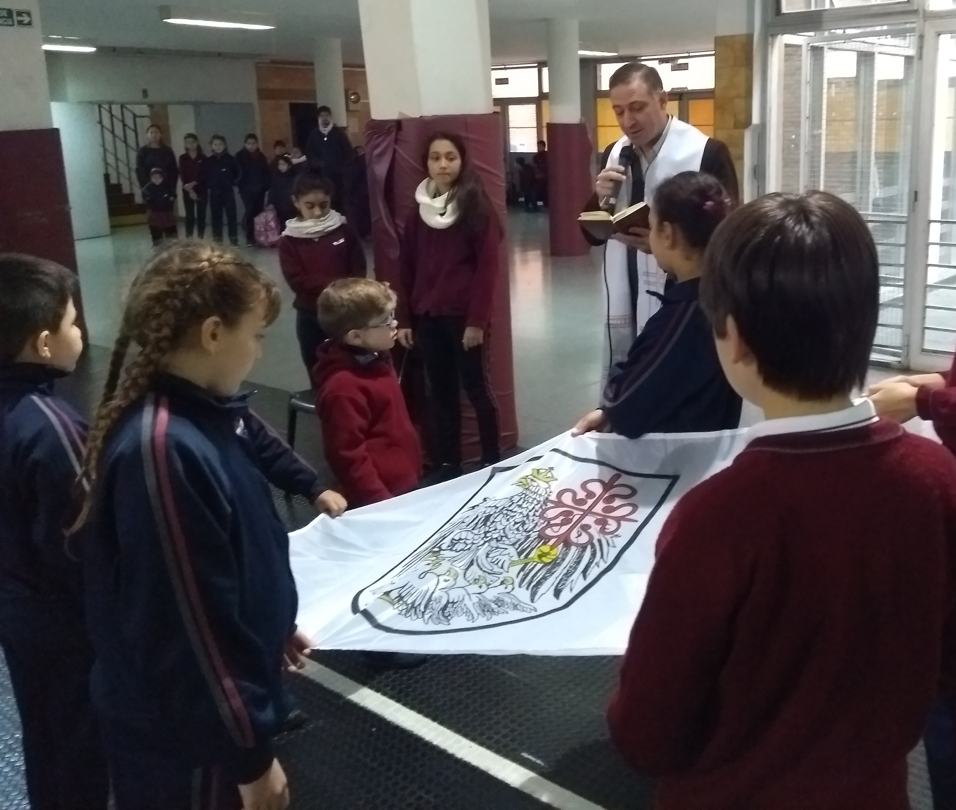 Fueron invitados a la ceremonia nuestro representante Legal Padre Irineu, el Padre Juan, autoridades institucionales del nivel medio, representantes de alumnos del nivel secundario, docentes y alumnos del nivel primario.