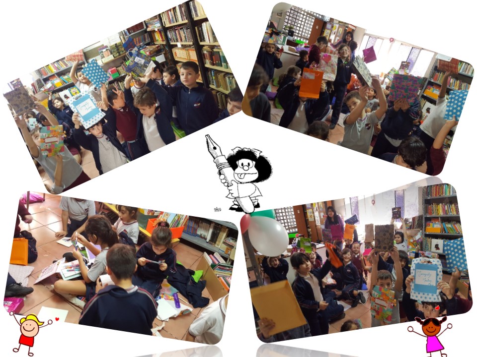 Recibieron un "sobre misteriosos" con instrucciones, que fueron siguiendo cada una de ellas. Cuando pasaron por biblioteca dentro de un libro encontraron una pista, que los llevo a una bolsa donde estaban los regalitos que habían preparado los familiares con dedicación.