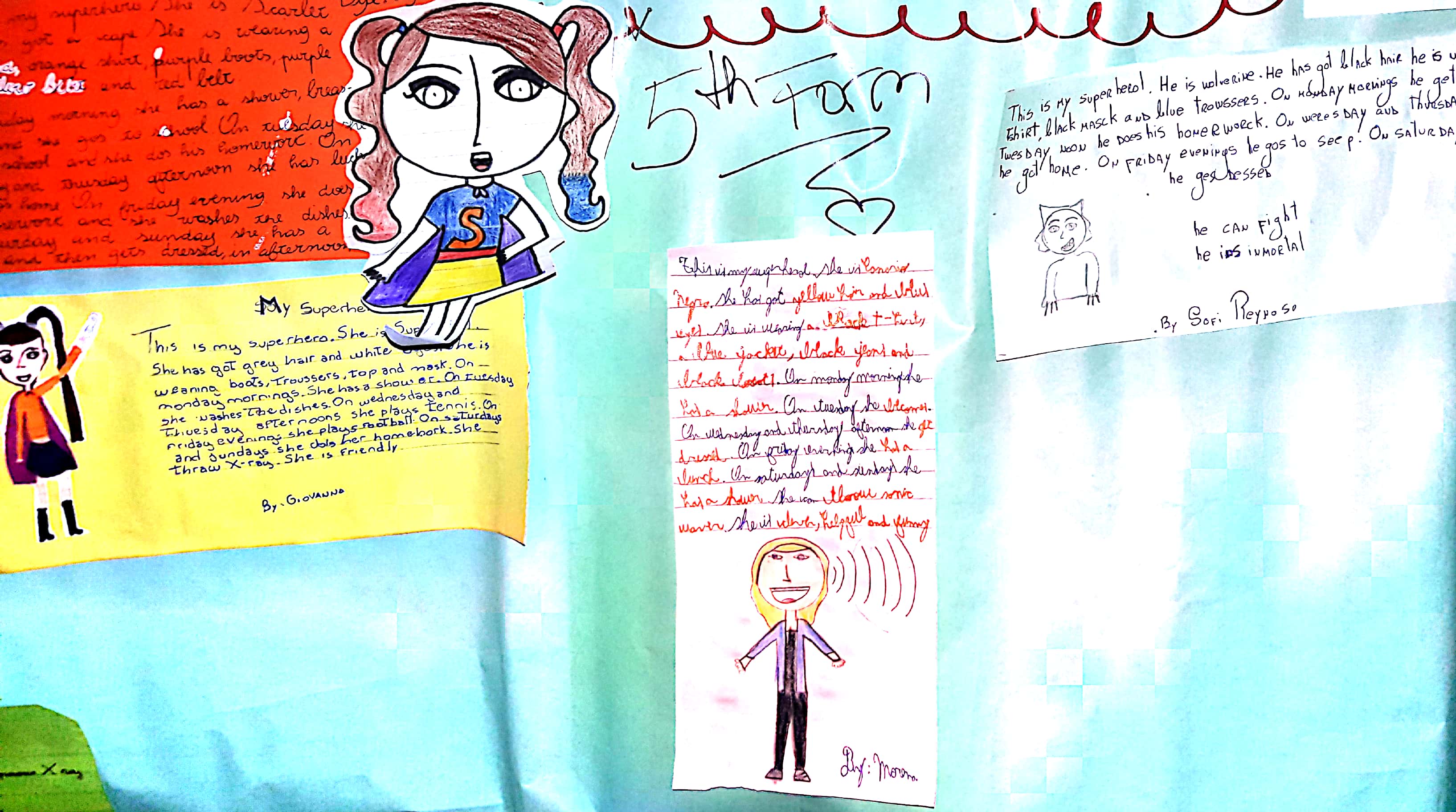 Fifth form students have been working with superheroes. They've told us all about their clothes, appearance, routines, personality and superpowers! Enjoy!