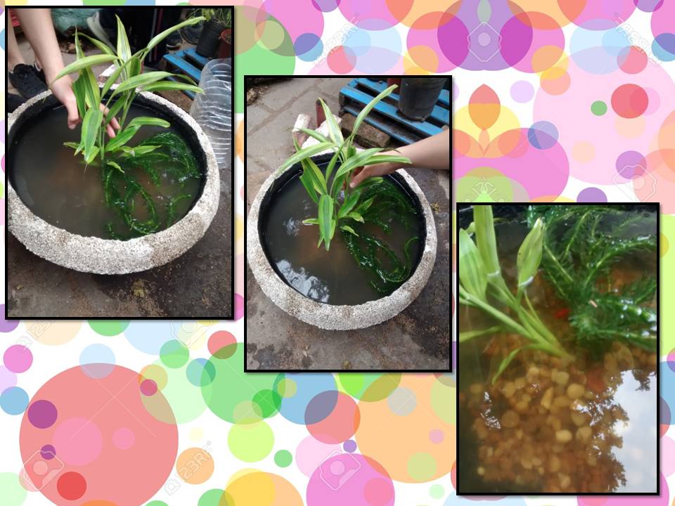 En nuestra huerta un antiguo macetero donado por los abuelos de Galo y Lara Robio hace de contenedor para este ecosistema del cual los estudiantes de 2° año serán los encargados de mantener y preservar en sanas condiciones.