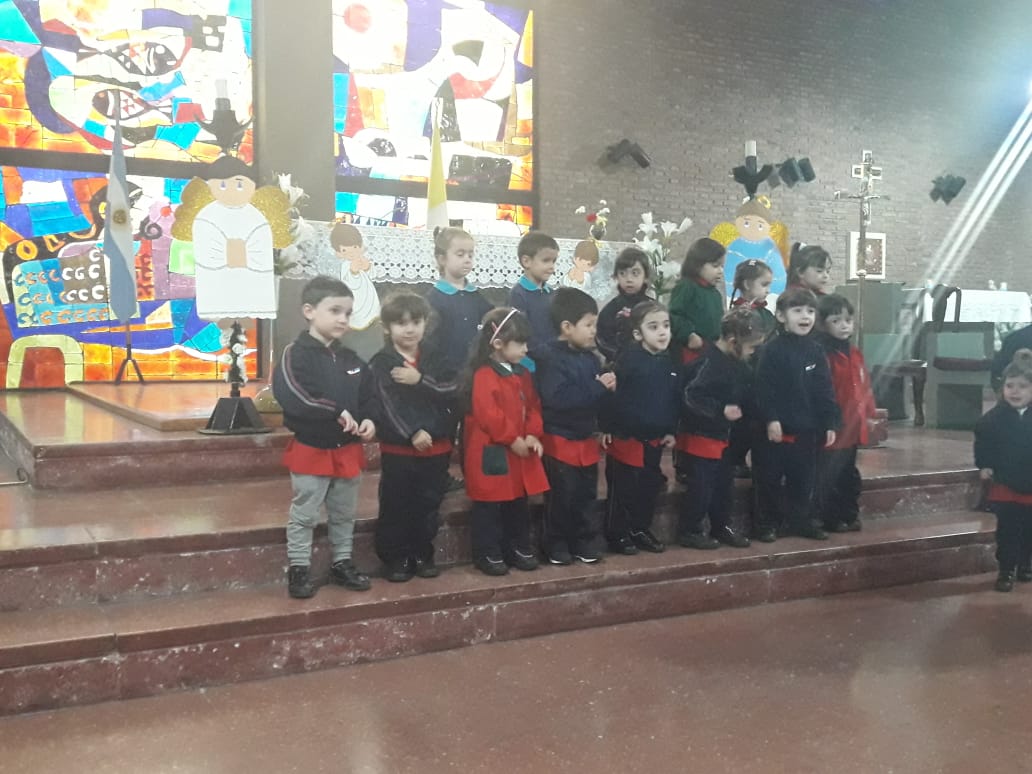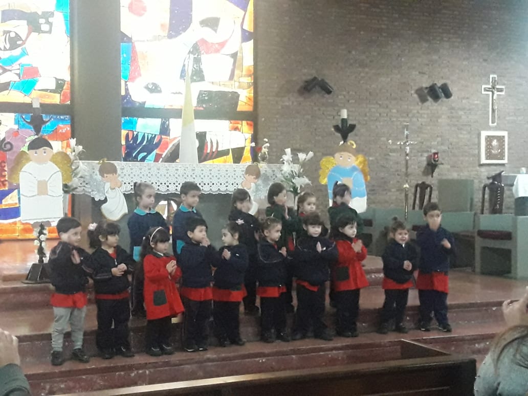La Celebración del Ángel de la Guarda reúne a todos los niños/as y familias de Sala de 3 años, a los que se incorporaron este año en la Sala de 4 y 5 años.