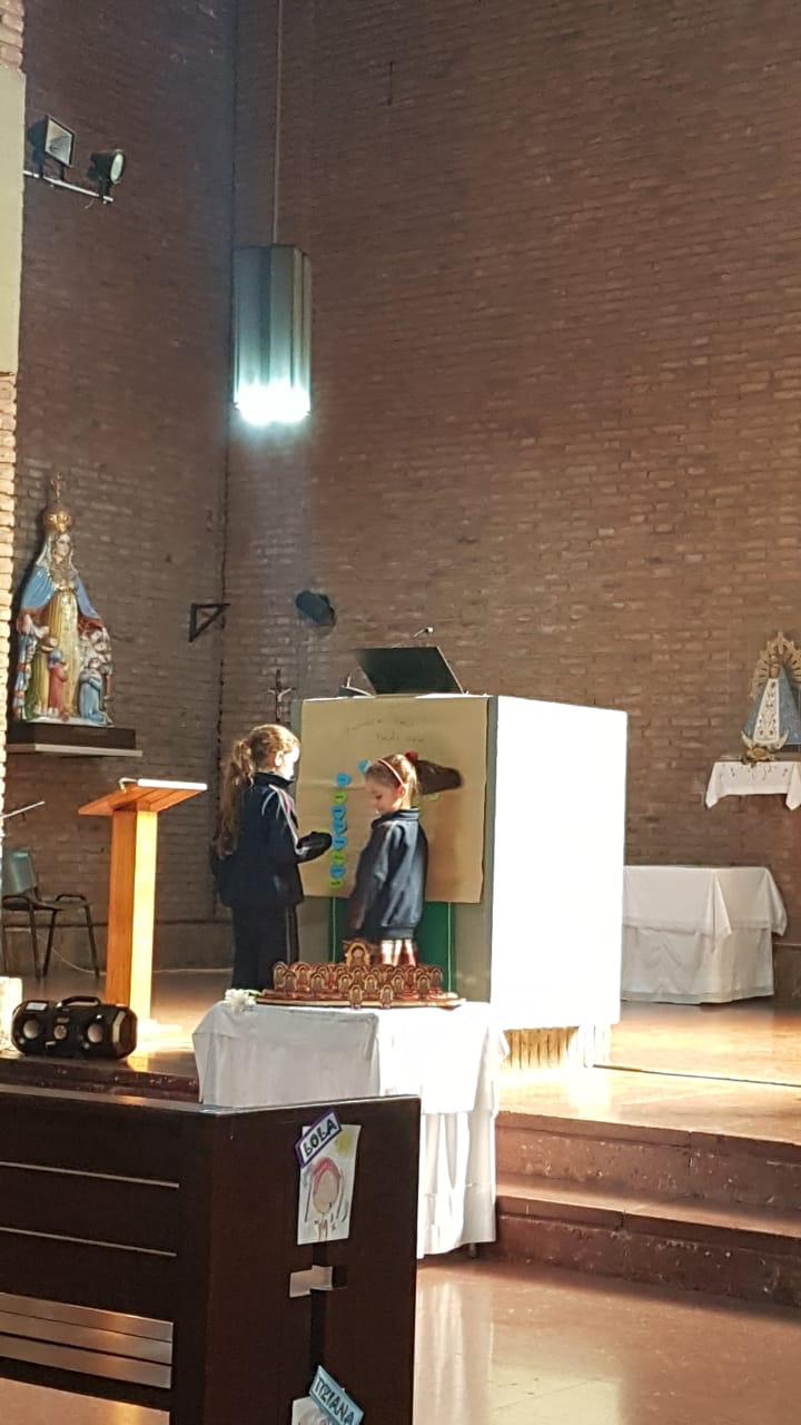 El lunes 29 los alumnos de 1er grado se consagraron a la Virgen y compartimos junto a sus familias un momento muy especial, gracias Padre Juan por su bendición.