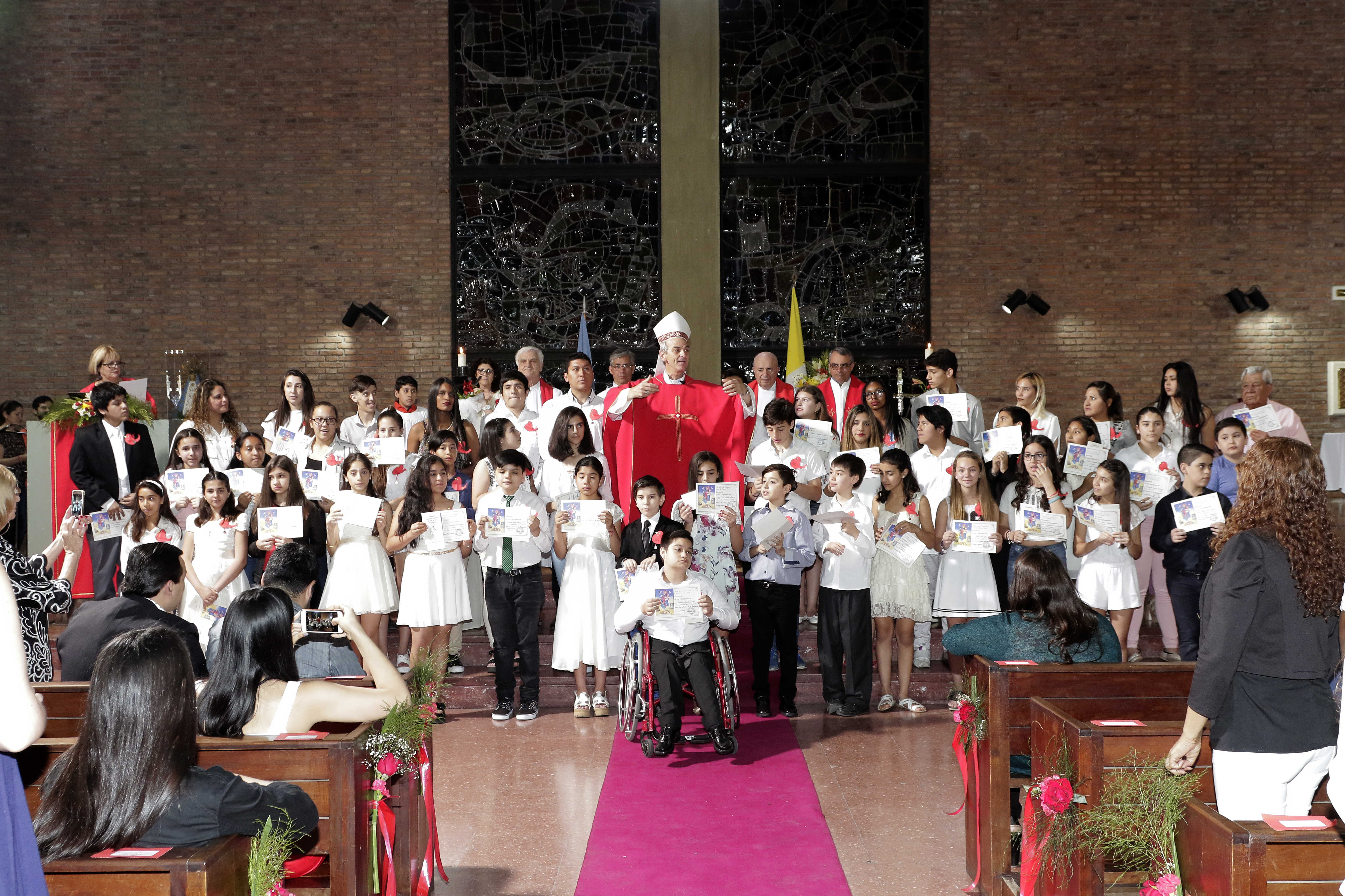 El domingo 18 de noviembre los alumnos de sexto grado junto a un grupo de chicos y adultos del barrio recibieron el sacramento de la Confirmación. Celebró la Santa Misa nuestro obispo Monseñor José María Baliña.