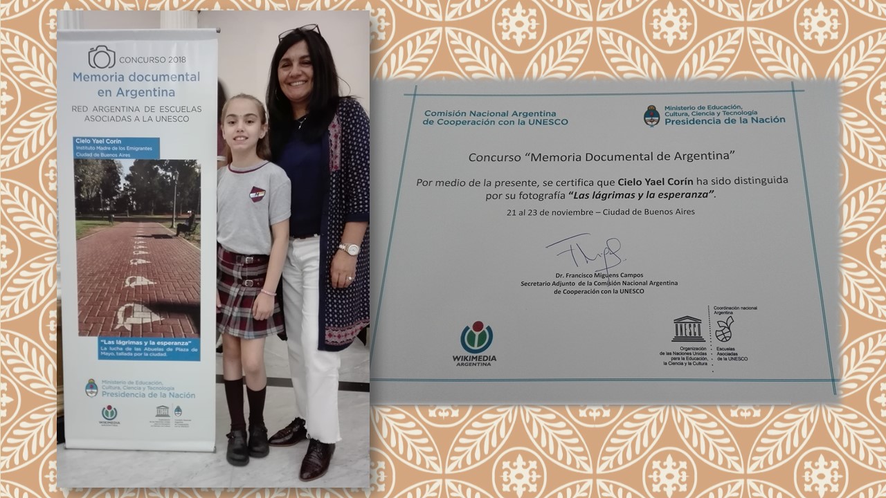 La alumna Cielo Yael Corín de 4to grado fue seleccionada como ganadora del Concurso Red PEA 2018 “Memoria Documental Argentina”.