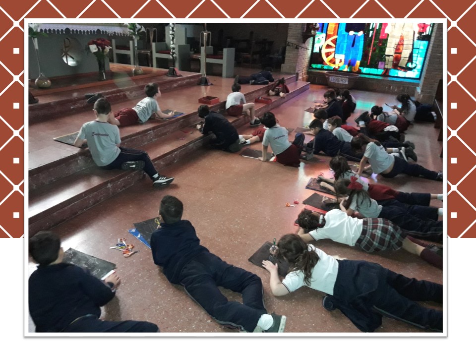 Las imágenes de los bellos murales de vidrio inspiraron nuestros dibujos.