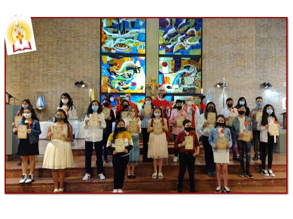 El domingo 21 de marzo un grupo de niños/as de 6to grado y del barrio recibieron el sacramento de la Confirmación. La Santa Misa fue celebrada por el obispo Monseñor José María Baliña junto a nuestro párroco Padre Irineu Zottio y Padre Juan.