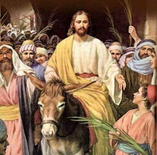 Cuando llegaba Jerusalén para celebrar la pascua, Jesús les pidió a sus discípulos traer un burrito y lo montó. Antes de entrar en Jerusalén, la gente tendía sus mantos por el camino y otros cortaban ramas de árboles alfombrando el paso, tal como acostumbraban saludar a los reyes.