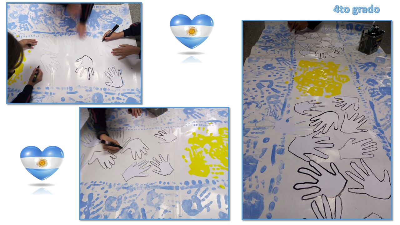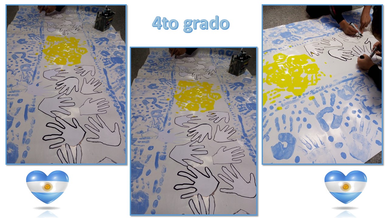 Cuarto grado comenzó a prepararse para su Promesa de Lealtad a la Bandera que será pronto. Junto a la seño Lorena y la profe Jimena elaboraron una Bandera con sus manitos...quedó hermosa.