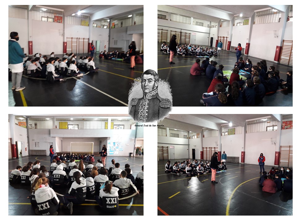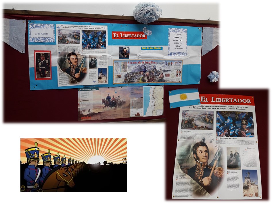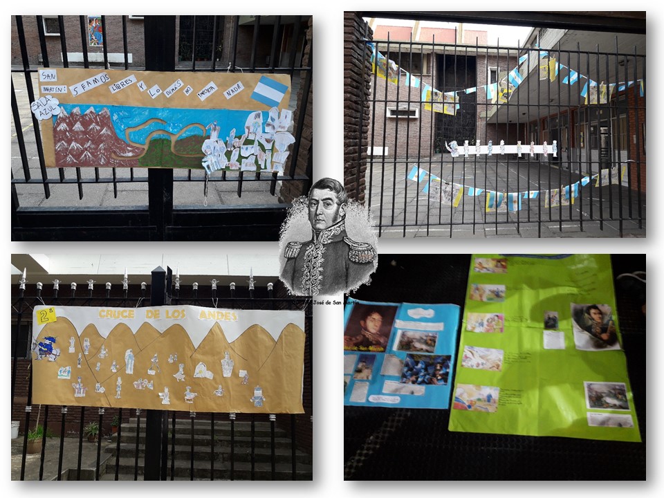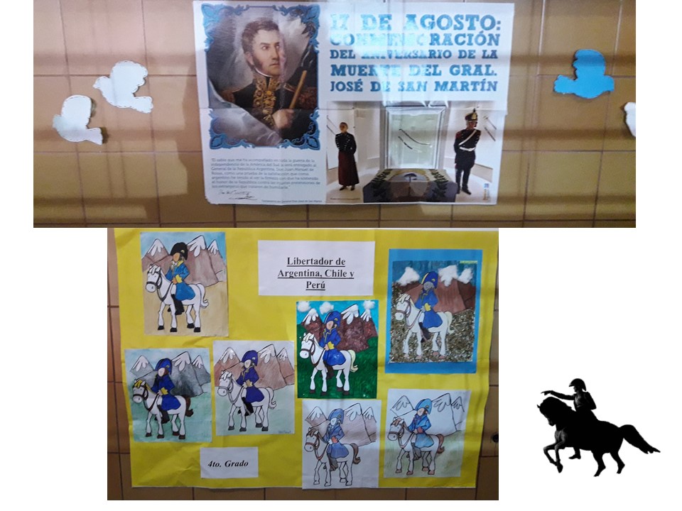 Los alumnos/as de nivel primario e inicial adornaron con sus trabajos las carteleras y las rejas de entrada. Así se conmemoró un nuevo aniversario del fallecimiento del General José de San Martín.