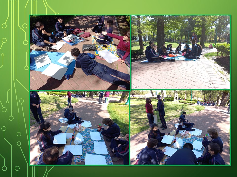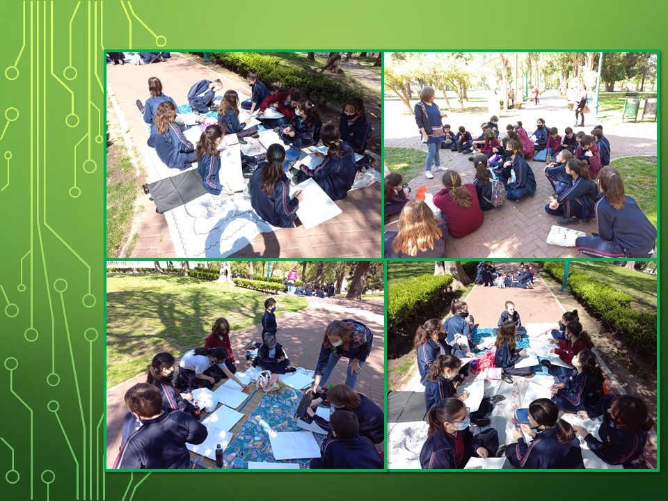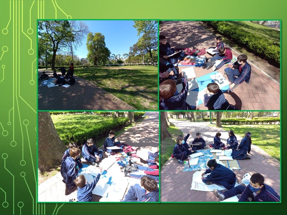 Los chicos y chicas de 6to grado salieron al Parque Lezama a pintar junto a la Seño Alejandra, Andea y Jime (Prof de Arte)
